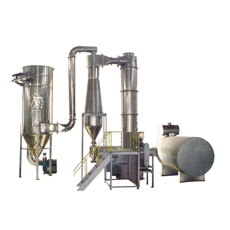 De lucht wordt verwarmd aan ongeveer 180-300 ° C door de verwarmer en ingaat de roterende plotselinge droger. Het natte materiaal wordt gevoed in het schroef het voeden mechanisme door het vervoerende apparaat, en de schroefvoeder kan steplessly worden geregeld. Na wordt uitgedreven, wordt het materiaal gedwongen in de belangrijkste toren, en dan wordt het blad verpletterd bij een hoge snelheid en heeft verschillende hoeken. De luchtstroom die op hoge temperatuur de belangrijkste toren ingaan bij hoge snelheid beïnvloedt de hoge snelheidsomwenteling en de meevoerenstijgingen. Op dit ogenblik, snel verdampen de temperatuur van de luchtstroomdalingen snel, en de vochtigheid van het materiaal. Daardoor voltooiend het het drogen proces.