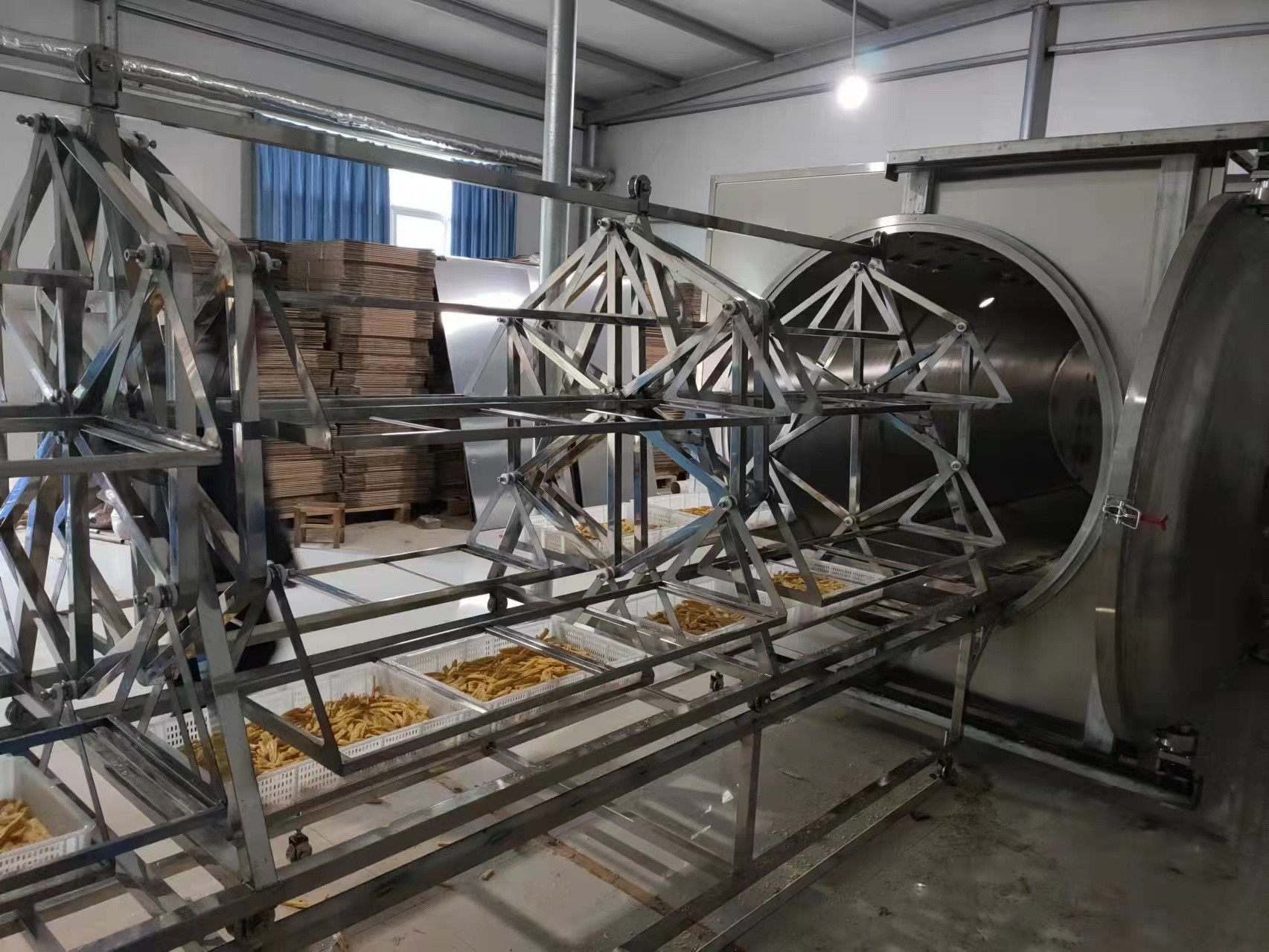 Een nieuwe methode om met microgolfvacuüm te drogen: Omdat de temperatuur van het vacuüm laag is, kan het vruchtensap in de binnenkant van het voorwerp onder de actie van het hoge frequentiemagnetische veld van de microgolf doordringen, en de watermolecules van het materiaal kunnen snel bij lage temperatuur zijn. Het wordt op tijd gelaten verdampen en door de vacuümpomp gelost. Geen kwestie hoe ingewikkeld de vorm van het materiaal is, het verwarmen is eenvormig en snel, wat de materiële dehydratie snel en eenvormig maakt, en tegelijkertijd beschadigt niet de structurele kenmerken van het materiaal, zodat het effect van het drogen van het materiaal idealer is.