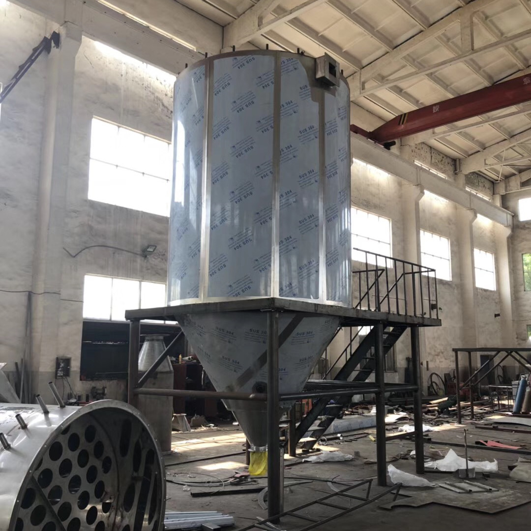 Na het filtreren en het verwarmen die, gaat de hete verse lucht in de luchtverdeler binnen bij de bovenkant van het drogen van kamer, op spiraalvormige manier uniform van wordt verdeeld tot neer. Tegelijkertijd, wordt de het voeden vloeistof gepompt aan de hoogste verstuiver, dan bespoten om mist vloeibare daling uiterst te zuiveren. Door de korte tijd van direct contact met hete lucht, de in een keer verdampte vochtigheid, blijft het vaste lichaam poeder zijn. Het droge poeder zal onophoudelijk van de bodem van droogtoren worden gelost en de cyclooncollector, de uitlaatlucht zal na het schoonmaken worden gelost.