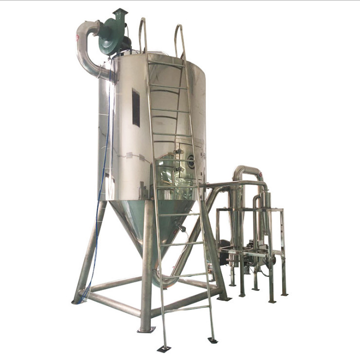 De lucht wordt gefiltreerd en in de hoogste luchtverdeler van de droger verwarmd, en de hete lucht gaat gelijk de drogende kamer op een spiraalvormige manier in. De materiële vloeistof wordt bespoten in een fijn geatomiseerd vloeibaar druppeltje door de hoge snelheids centrifugaalverstuiver bij de bovenkant van het torenlichaam, en kan met de hete lucht in een zeer korte tijd worden gecontacteerd en kan in geëindigd droog zijn - producten. Het afgewerkte product wordt onophoudelijk gelost van de bodem van de droogtoren en de cycloon, en het uitlaatgas wordt afgevoerd door de ontwerpventilator.