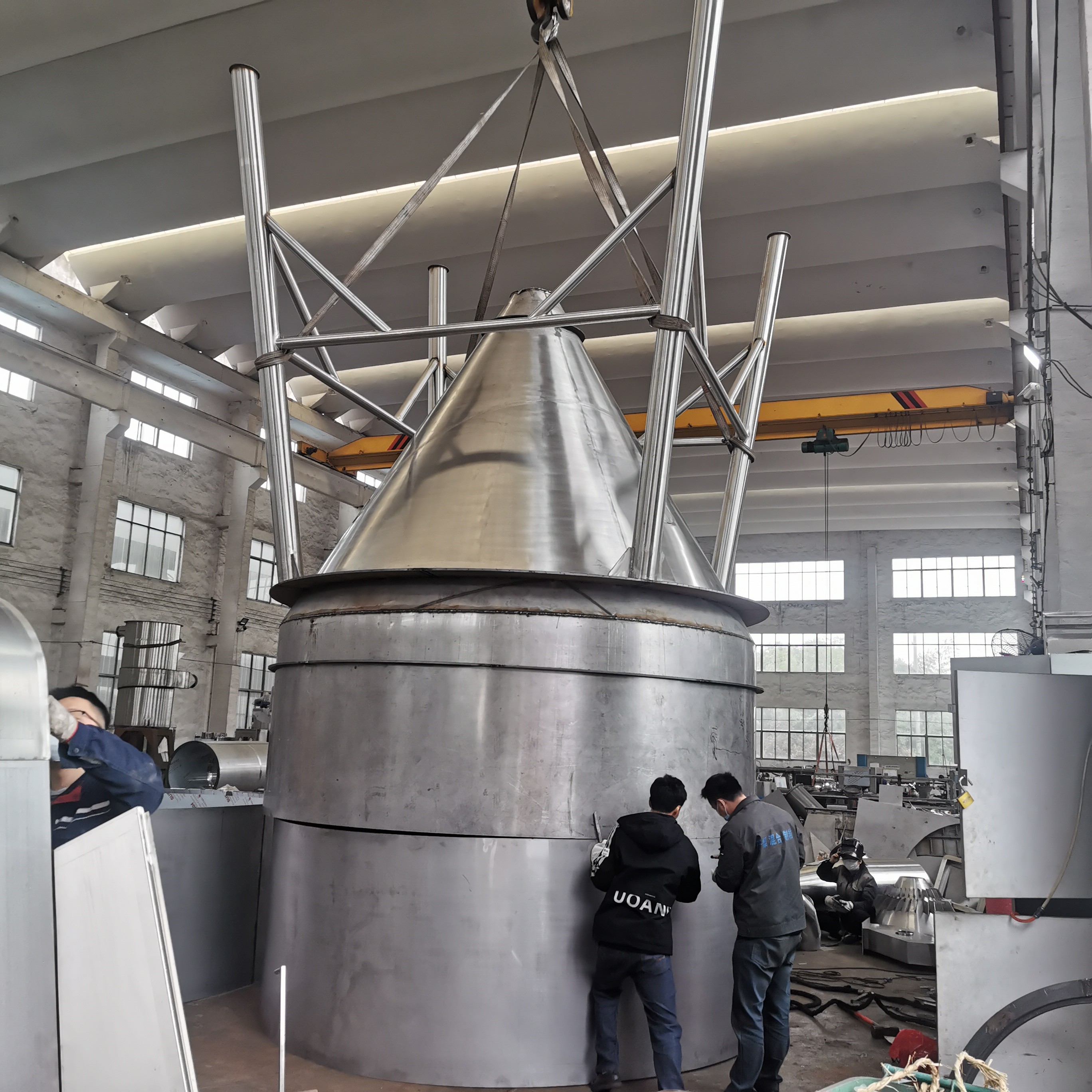 De lucht wordt gefiltreerd en in de bovenkant van de drogere luchtverdeler, hete lucht in de spiraal gelijk in de drogende kamer verwarmd. De materiële vloeistof wordt bespoten in een fijn geatomiseerd vloeibaar druppeltje door de hoge snelheids centrifugaalverstuiver bij de bovenkant van het torenlichaam, en kan met de hete lucht in een zeer korte tijd worden gecontacteerd en kan in geëindigd droog zijn - producten. Het afgewerkte product wordt onophoudelijk gelost van de bodem van de droogtoren en de cycloon, en het uitlaatgas wordt afgevoerd door de ontwerpventilator.