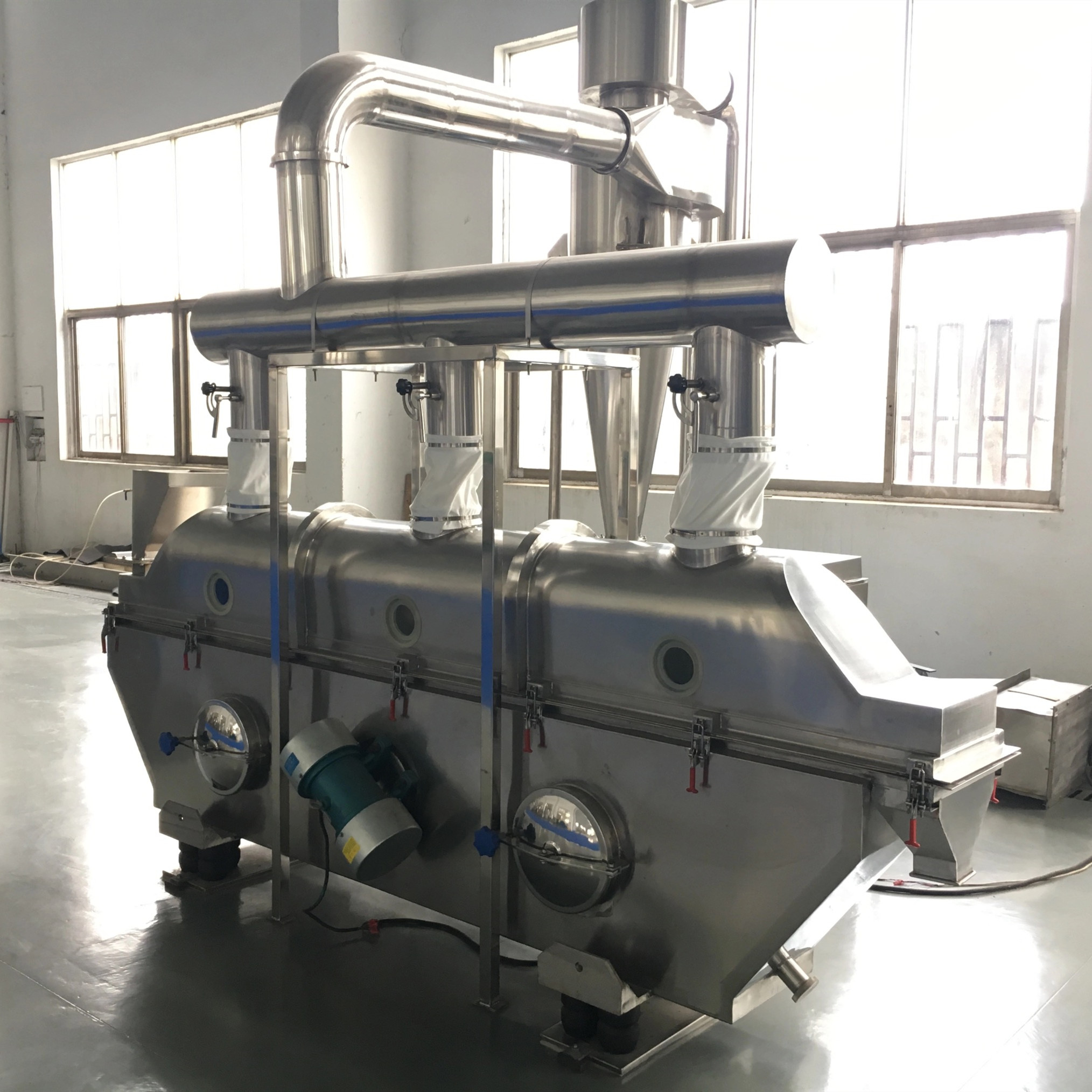 Het werkt hoogst efficiënt en spaart meer dan 30%-energie dan andere drogers. Vloeibaar gemaakt - die het bed maakt het materiaal, geen het oververhitten bij om het even welk gebied gelijk wordt verwarmd. De trillingskracht is zelfs sterk eind, en keurt stepless aanpassing volgens het ontwerp goed. Het proces is onschadelijk aan het materiaal geen kwestie welke grootte of het is gestalte geef.
